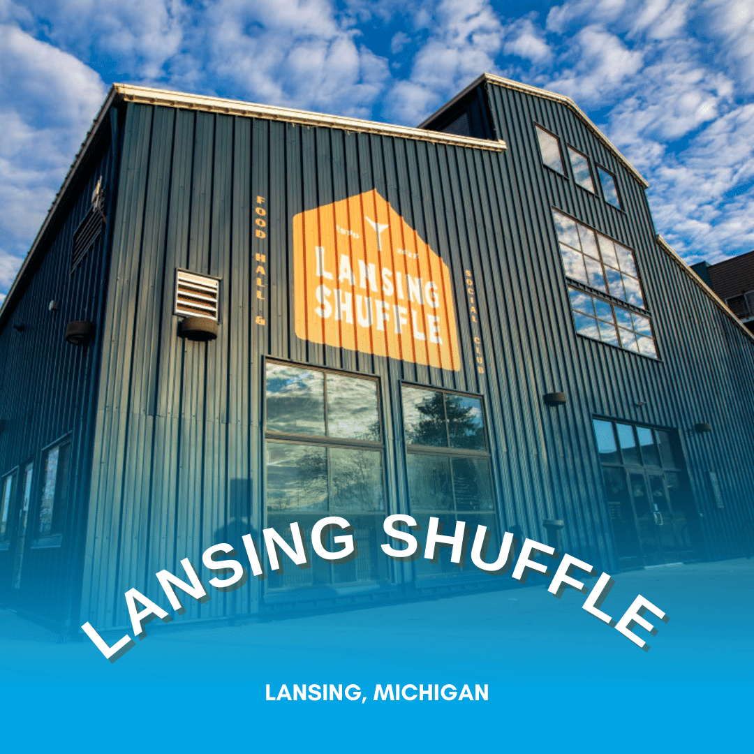 Located on the Lansing riverfront in Downtown is the 11,000-sqft space that features seven different restaurants that can be a great stop during lunch or an after-work hangout. With a full-service bar inside, the location boasts elevated local street food, a stage for feature events, and yes – shuffleboard! The outdoor shuffleboard courts were just opened recently and are a main feature of the space.